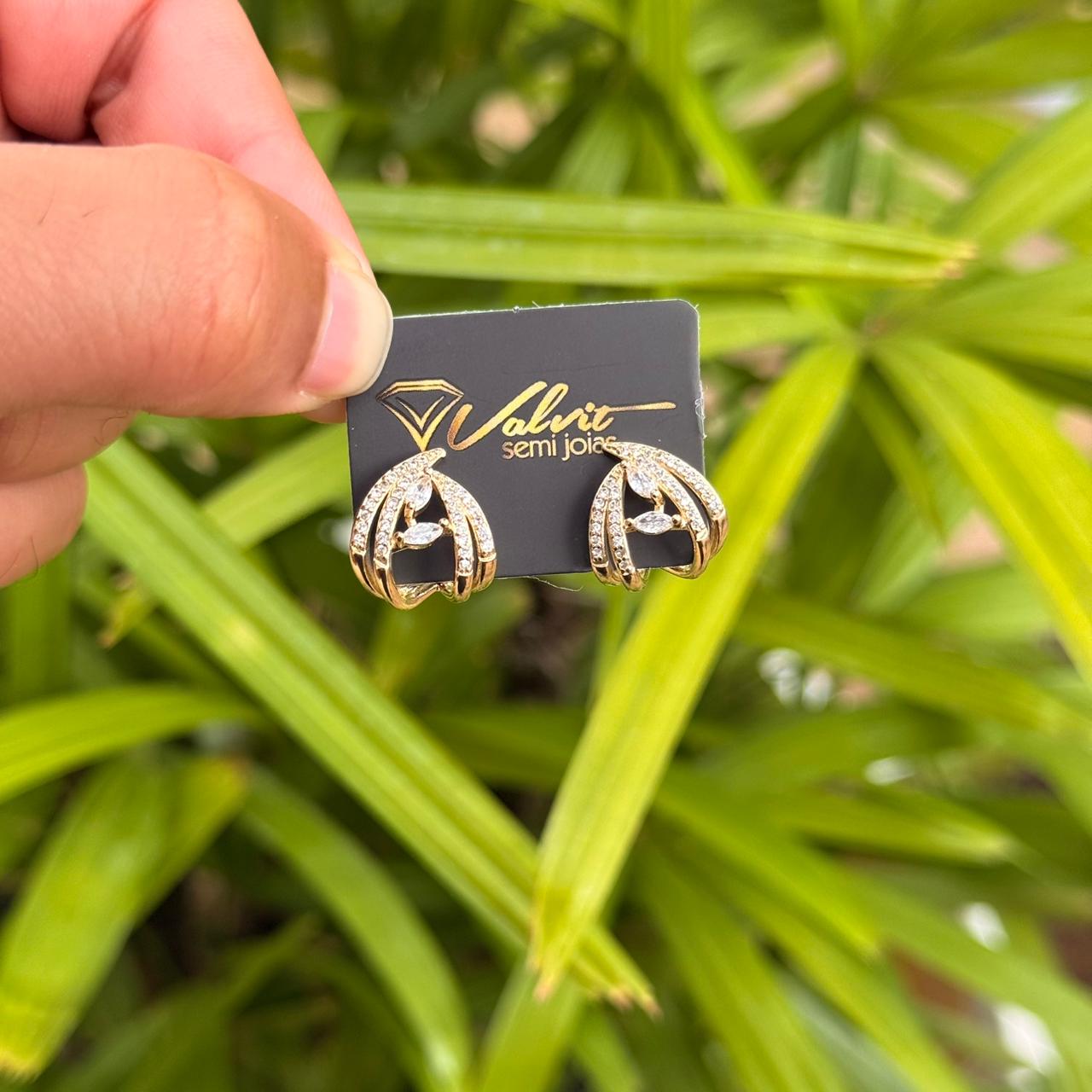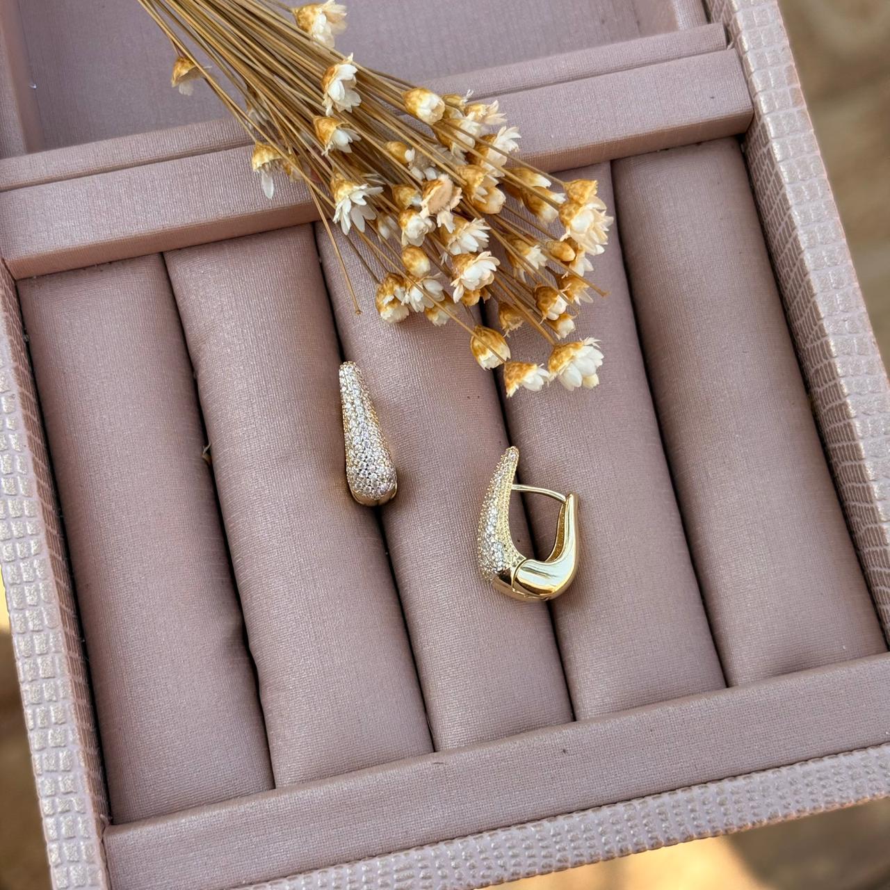 Brinco argola cravejada estilo U 14,2 x 20,0