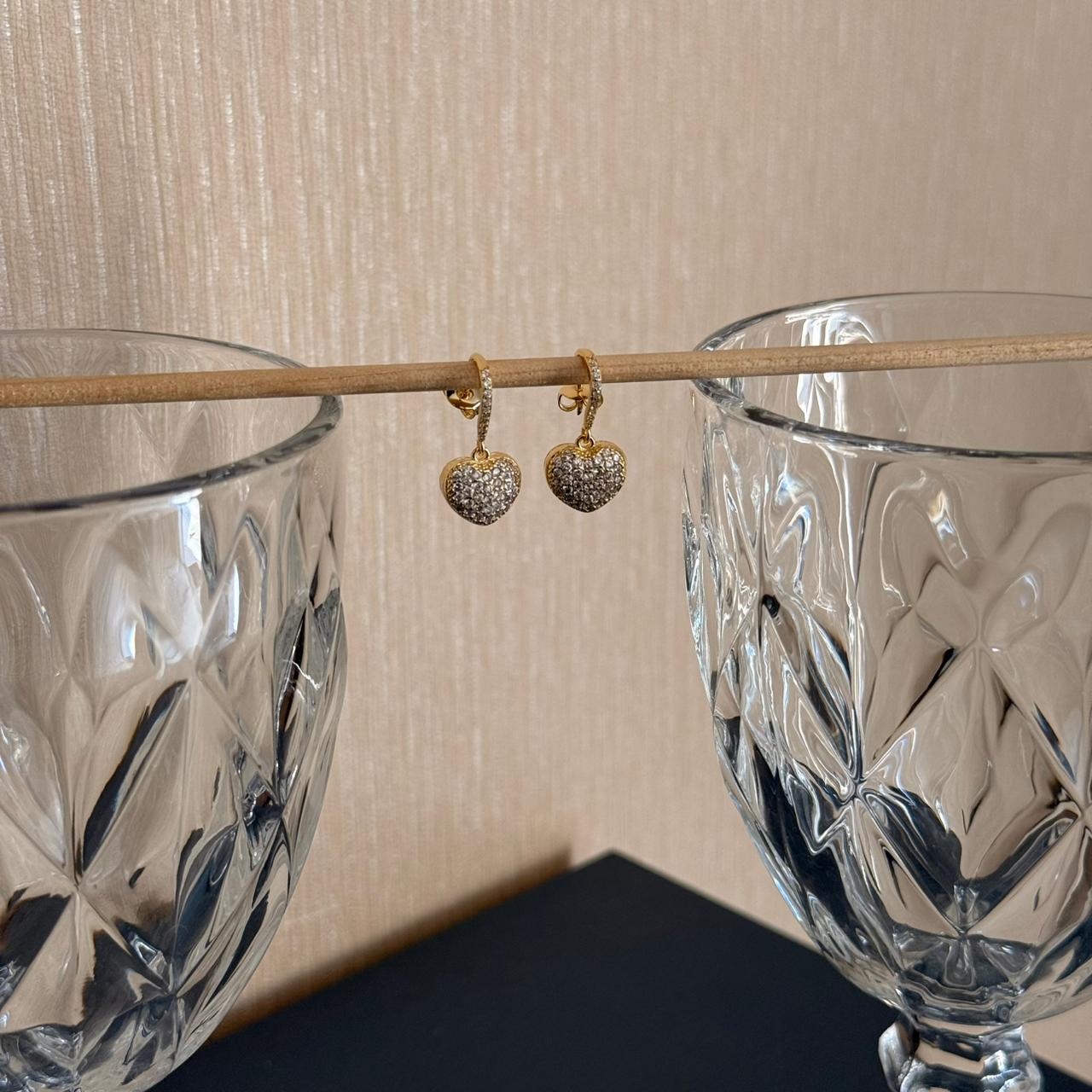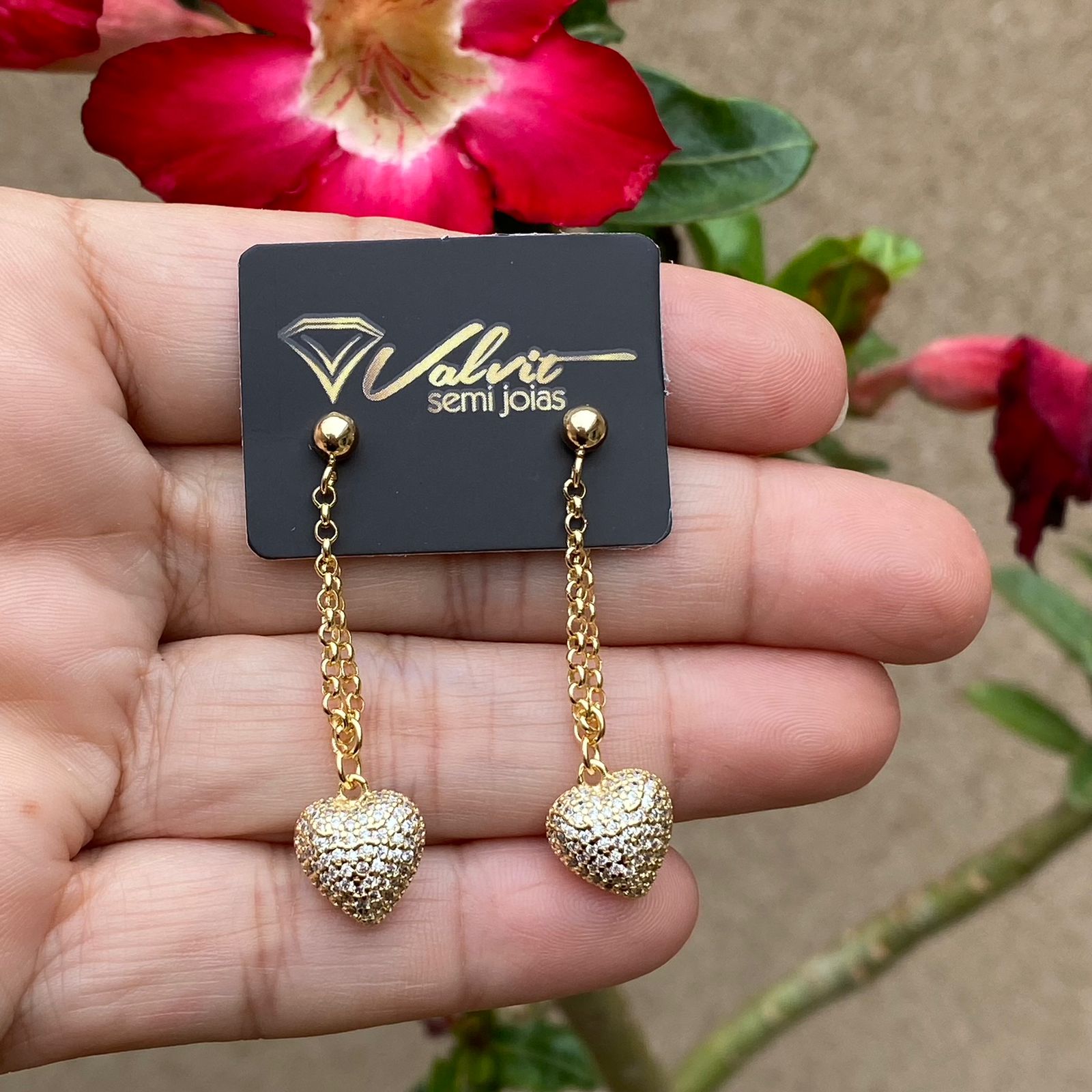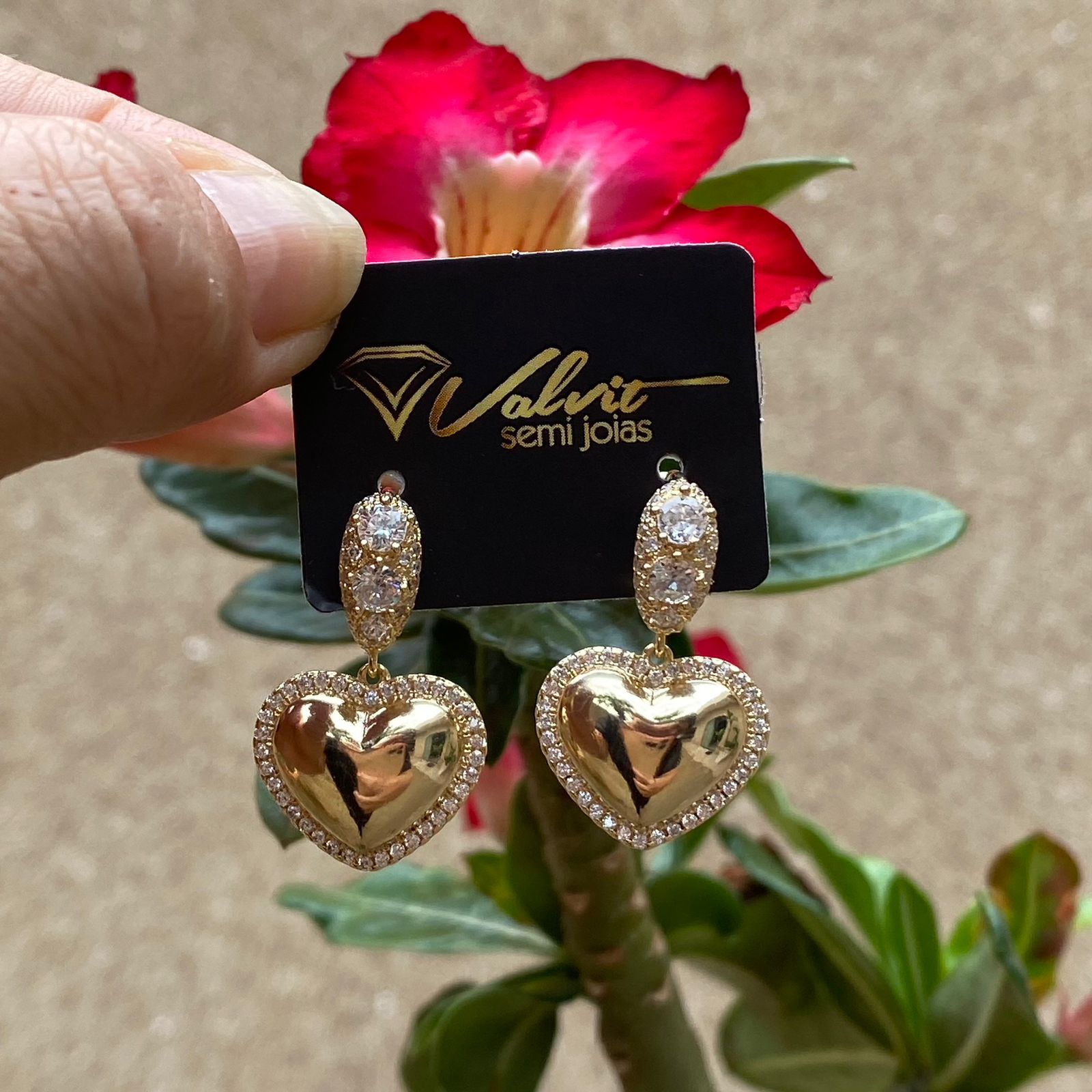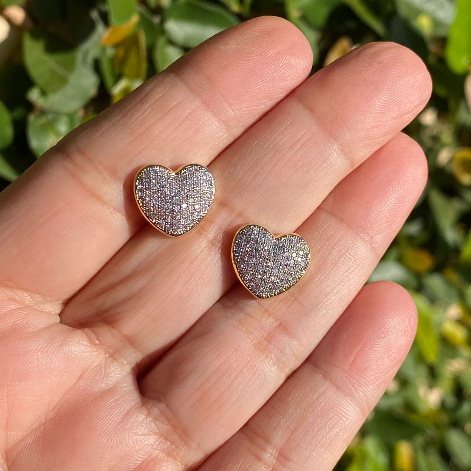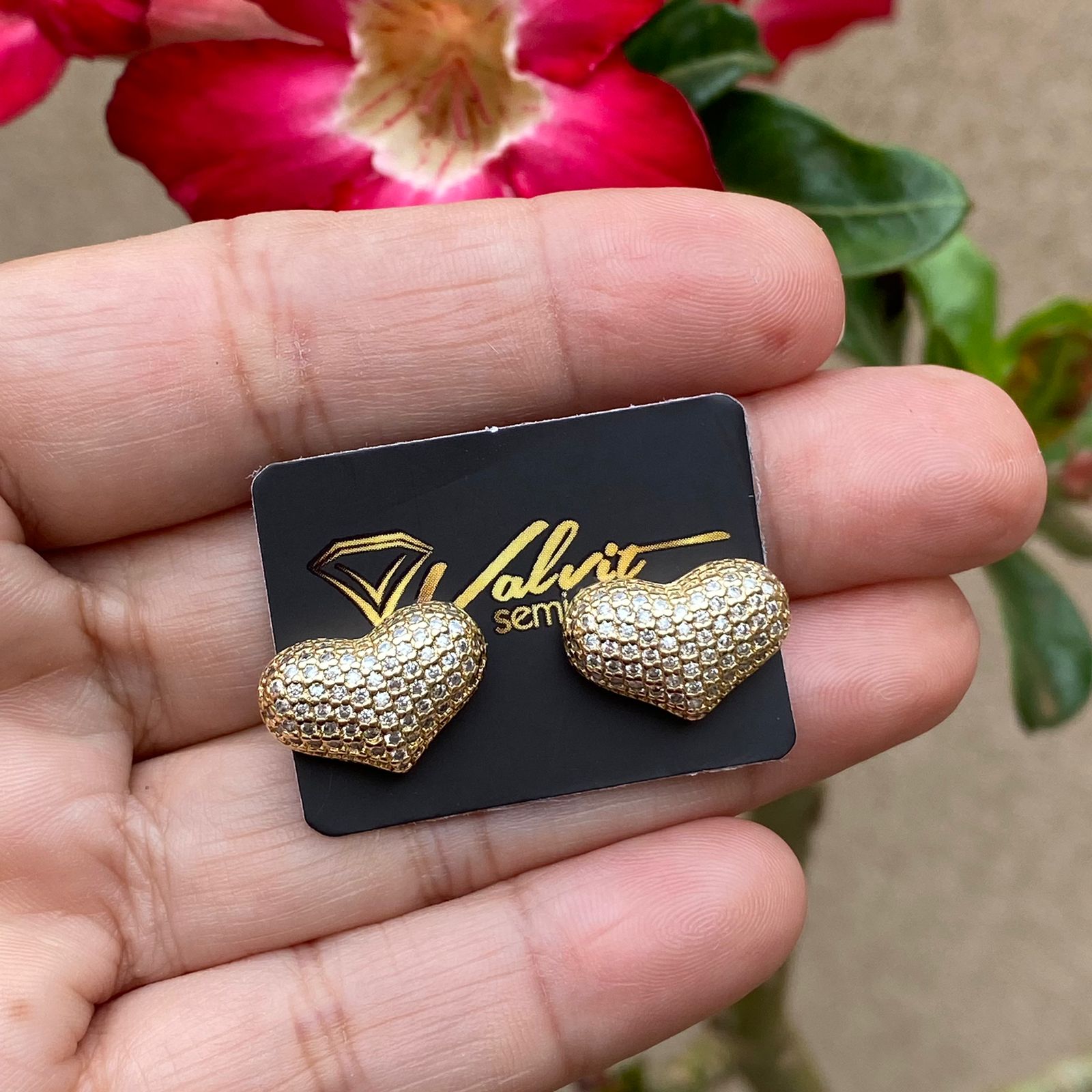 Brinco cravejado fixo coração 12,6 x 11,5mm