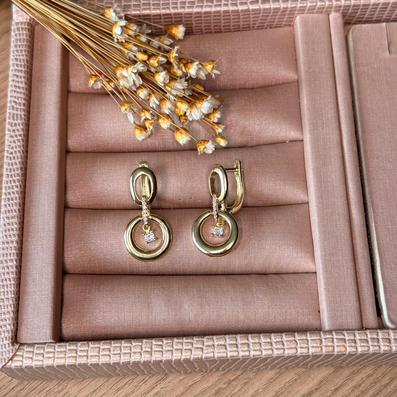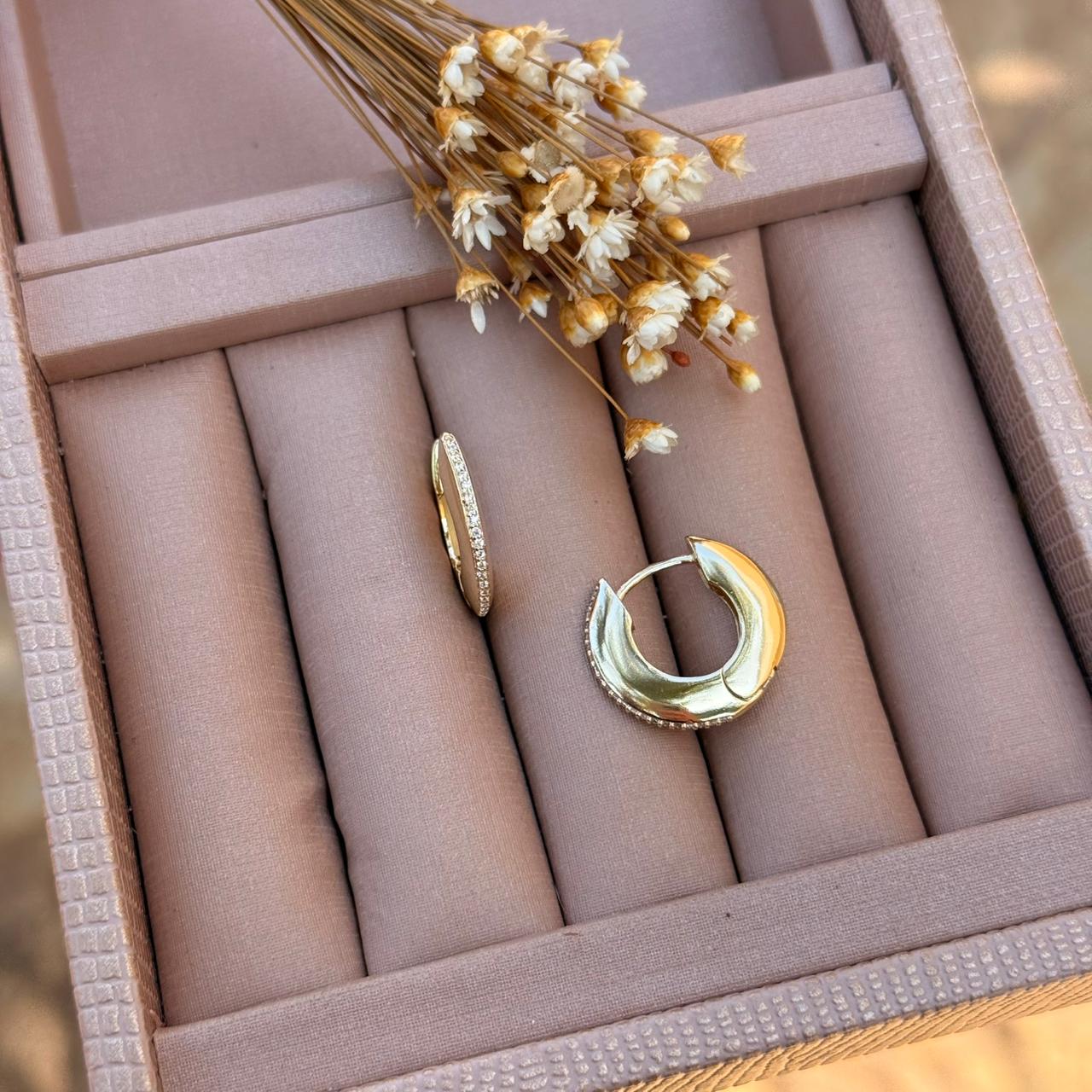 Brinco argola cravejada achatada 22,5 x 3,7mm