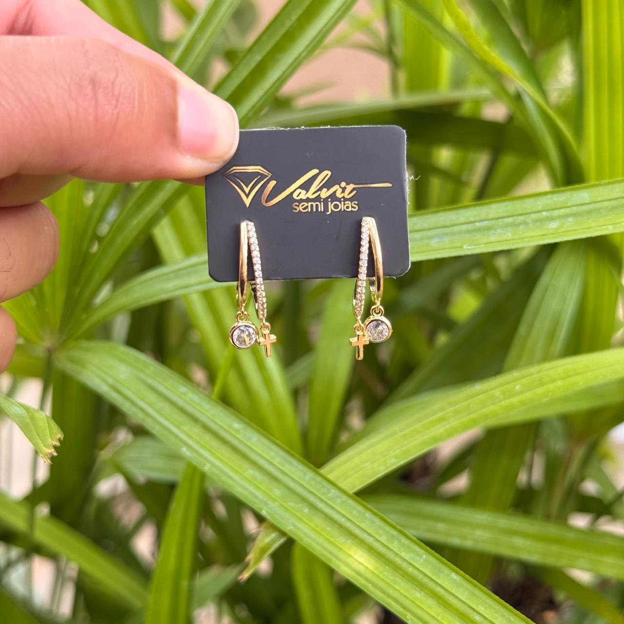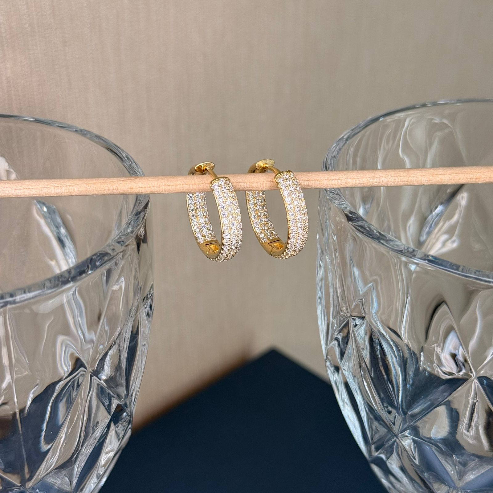 Brinco argola cravejada estilo U 14,2 x 20,0
