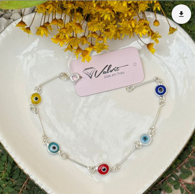 Pulseira prata olho grego colorido