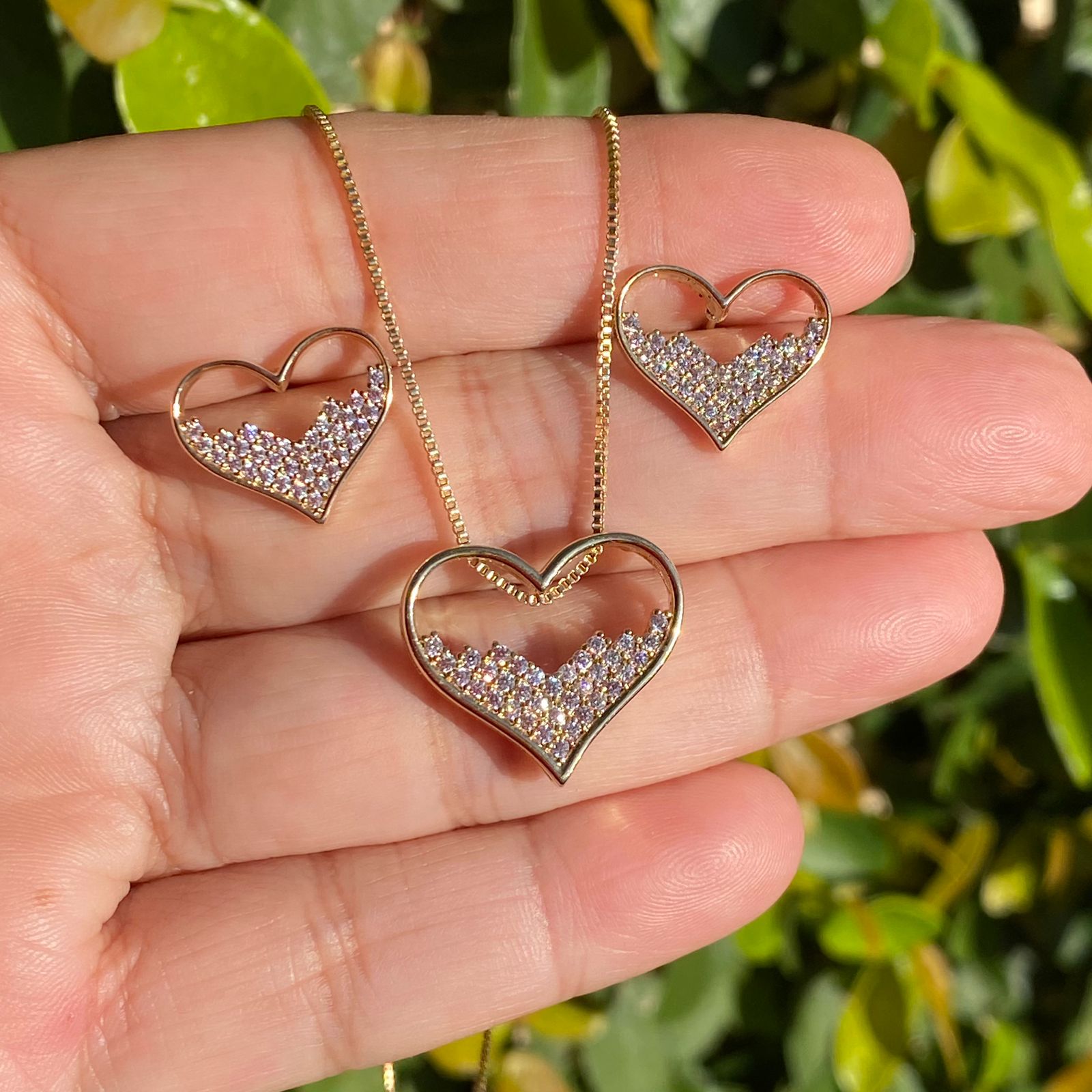 Conjunto cravejado de coração