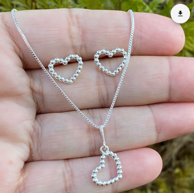 Conjunto prata coração vazado 12,0mm