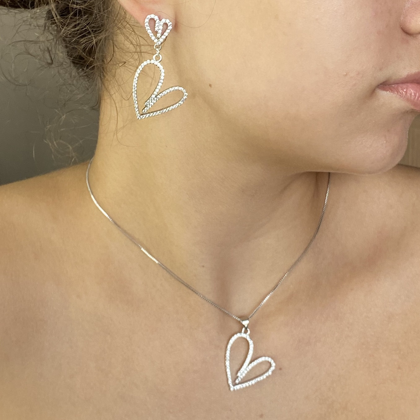 Conjunto coração cravejado