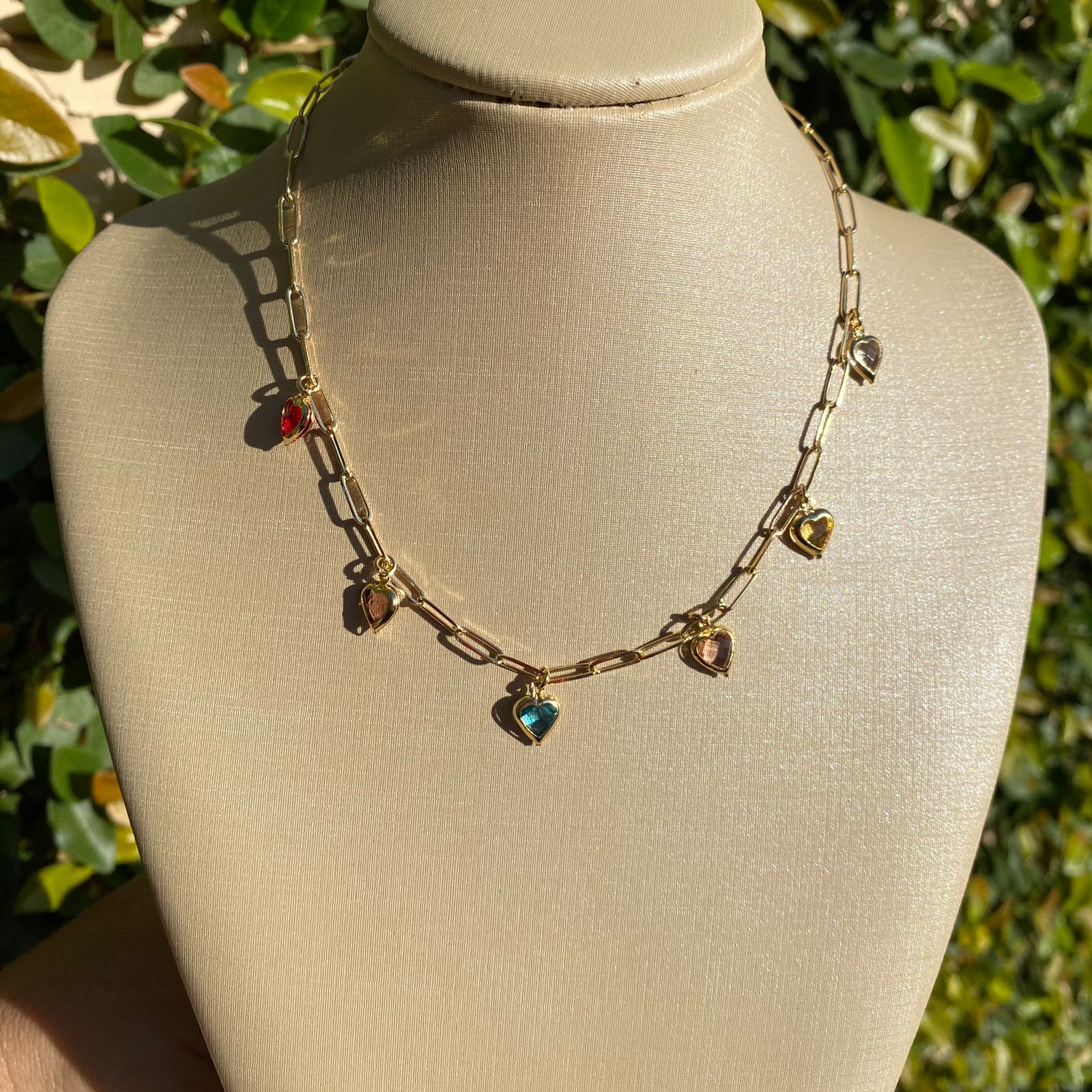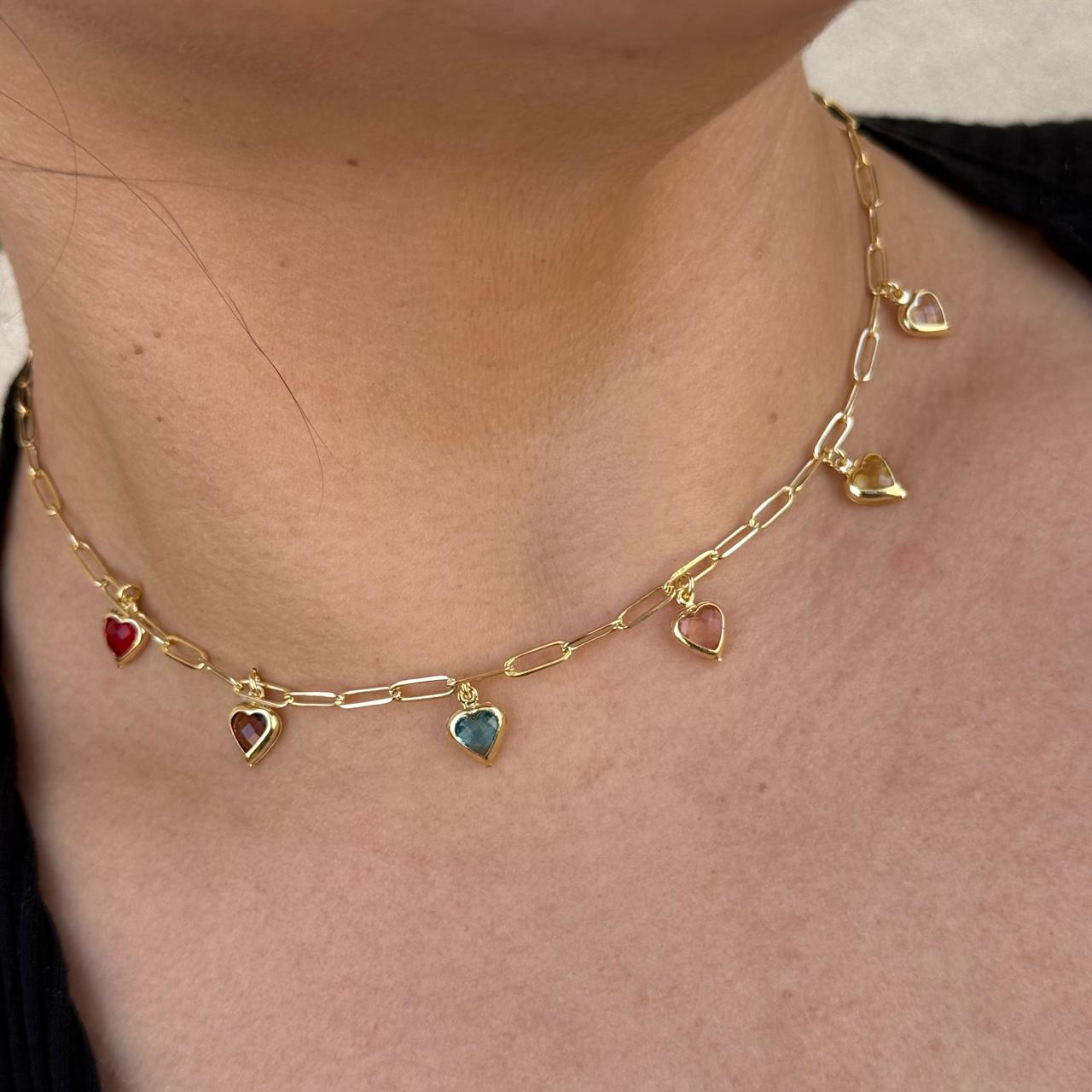 Chocker com pedra de coração colorida pendura