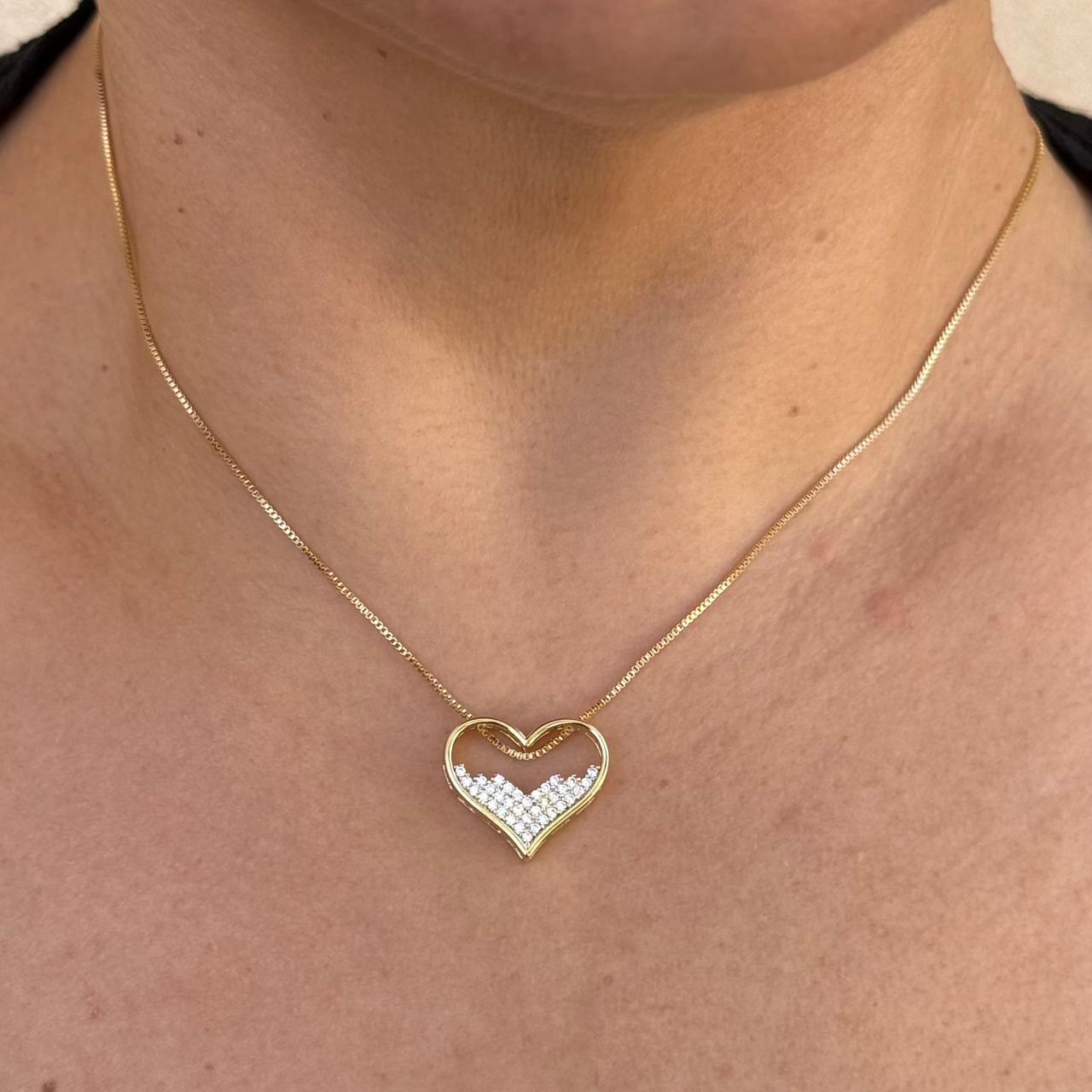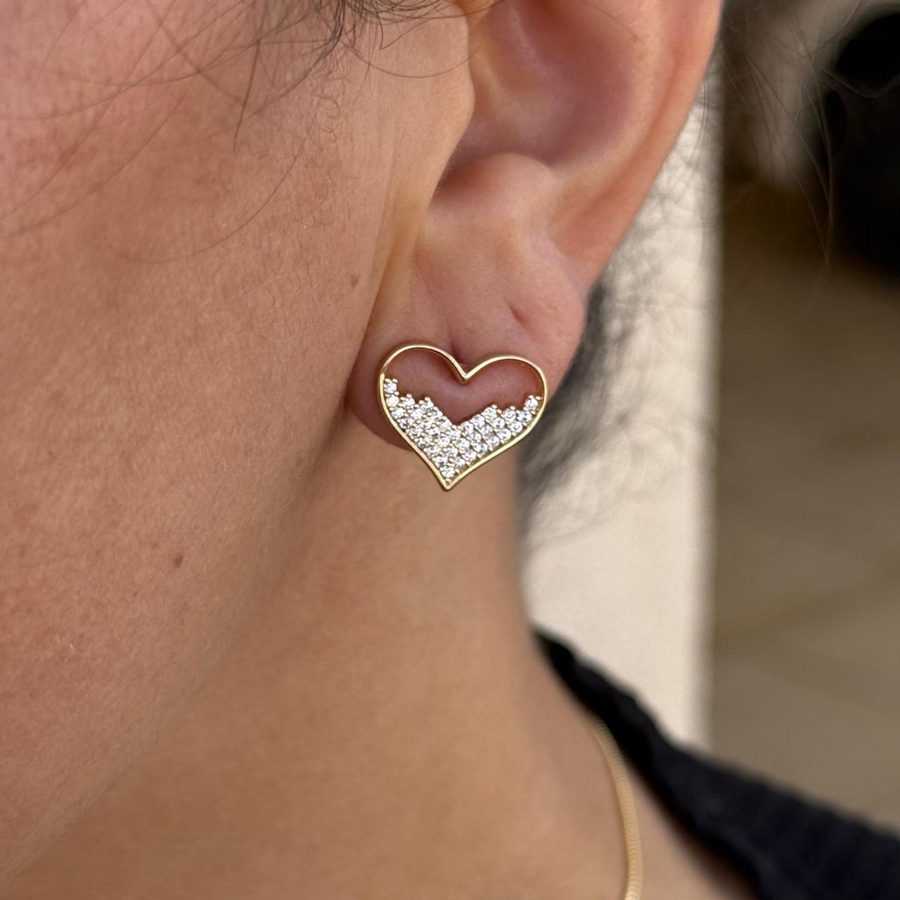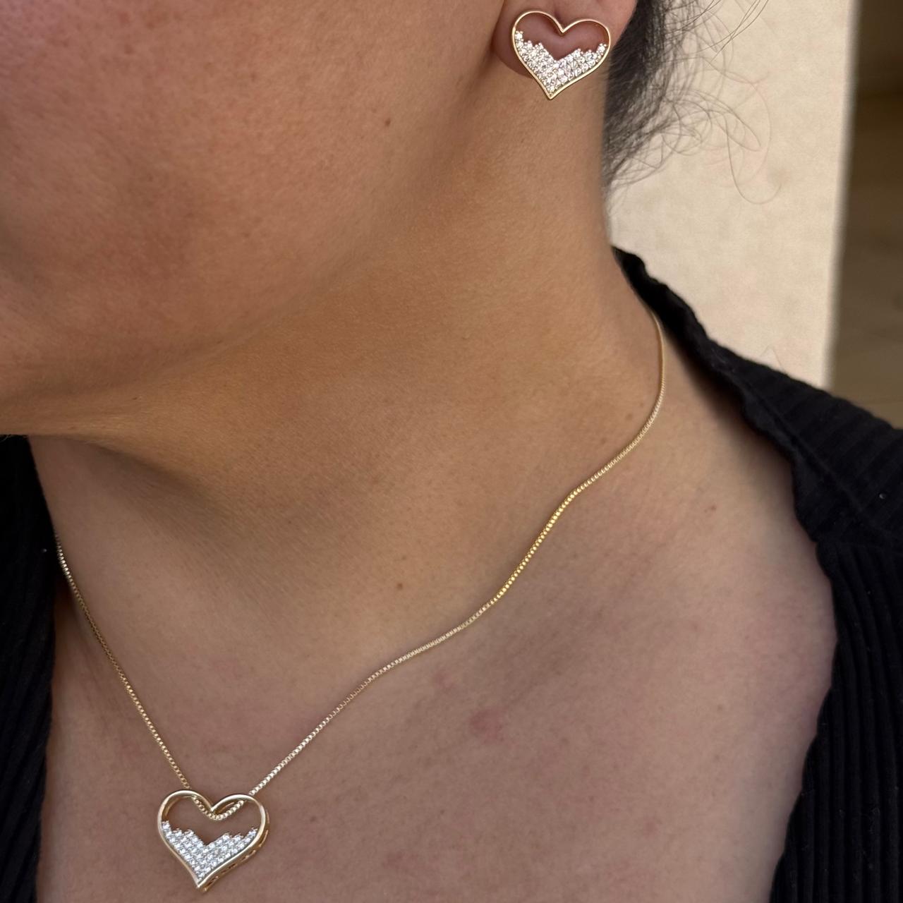 Conjunto cravejado coração metade vazado